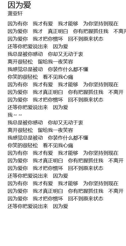 | [03:04.380] | 还等你把爱说出来 因为爱 |