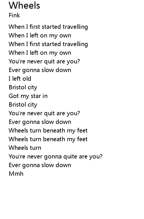| Song | Wheels |