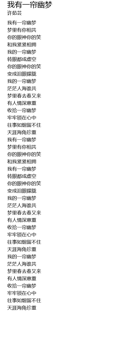| [00:45.0] | wǒ de yī lián yōu mèng |