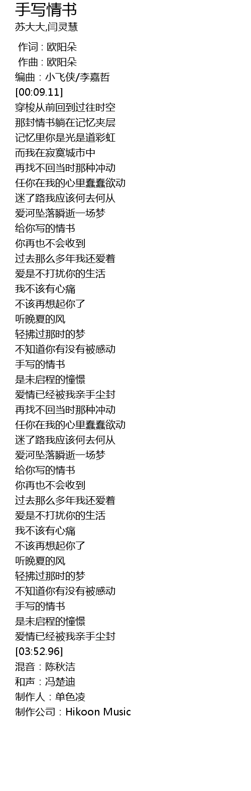 | [02:41.36] | gěi nǐ xiě de qíng shū |