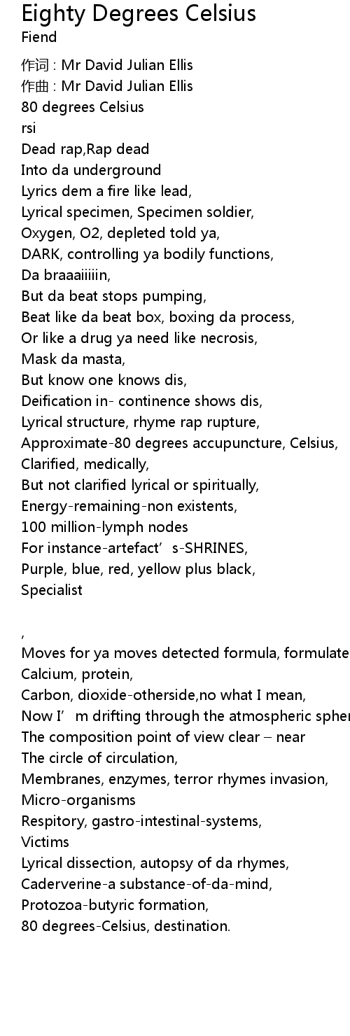 | 作词 : Mr David Julian Ellis | |