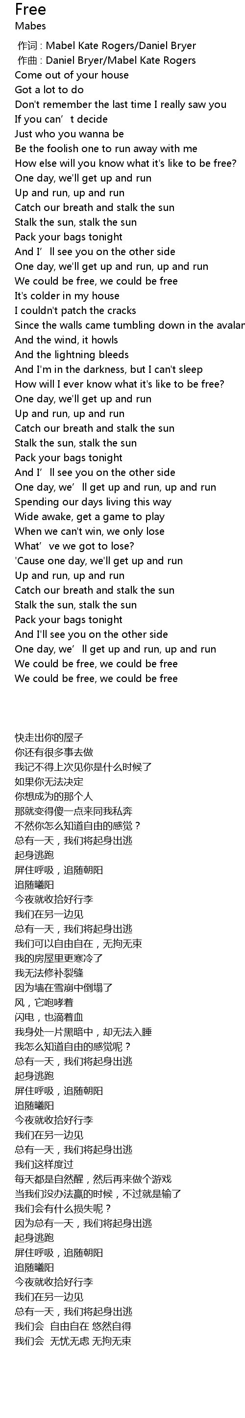 | [00:36.38] | How else will you know what it' s like to be free? |