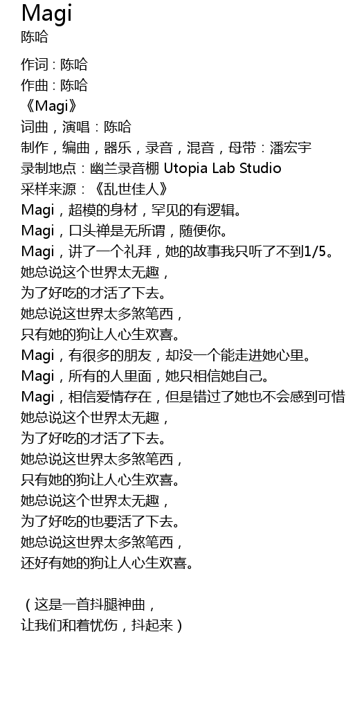 | Magi, jiang le yi ge li bai, ta de gu shi wo zhi ting liao bu dao 1 5. | |