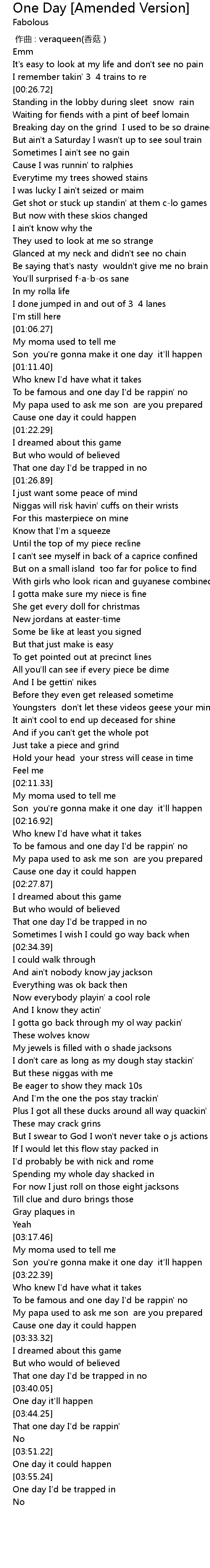| [03:25.68] | To be famous and one day I'd be rappin' no |