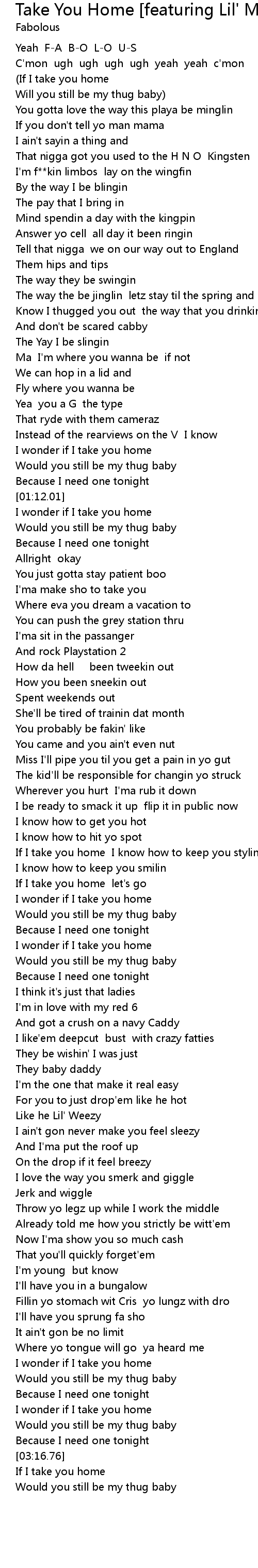 Take You Home [featuring Lil' Mo] [Amended Version] Lyrics