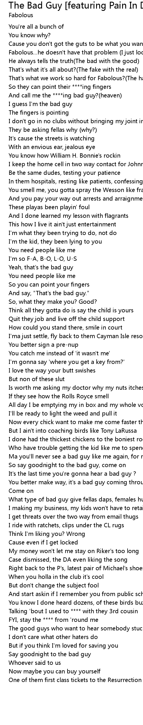 The Bad Guy [featuring Pain In Da Ass] [Amended Version] Lyrics