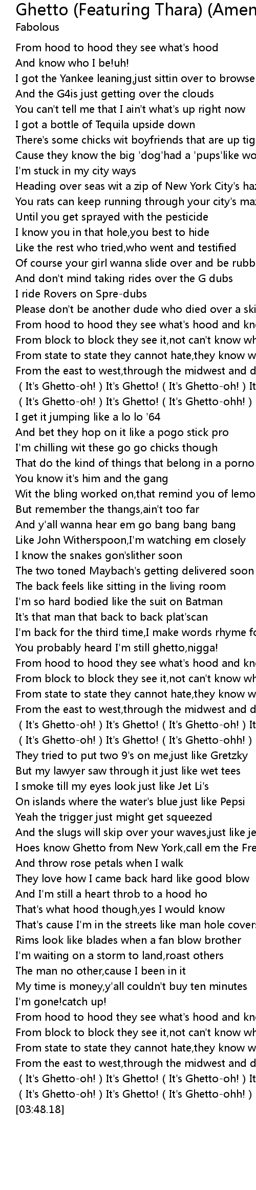 | [03:36.85] | (It's Ghetto-oh!)It's Ghetto!(It's Ghetto-oh!)It's Ghetto! |