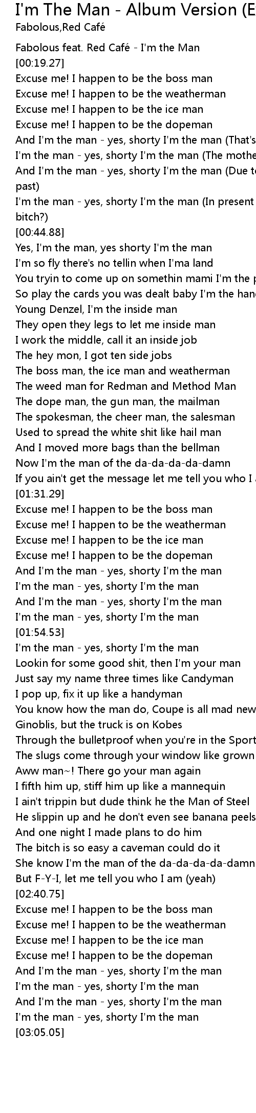 | [03:02.11] | I'm the man - yes, shorty I'm the man |