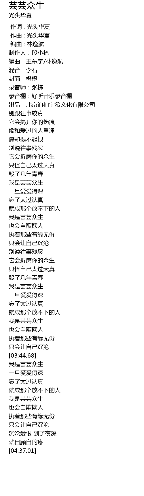 | [01:37.19] | wǒ shì yún yún zhòng shēng |