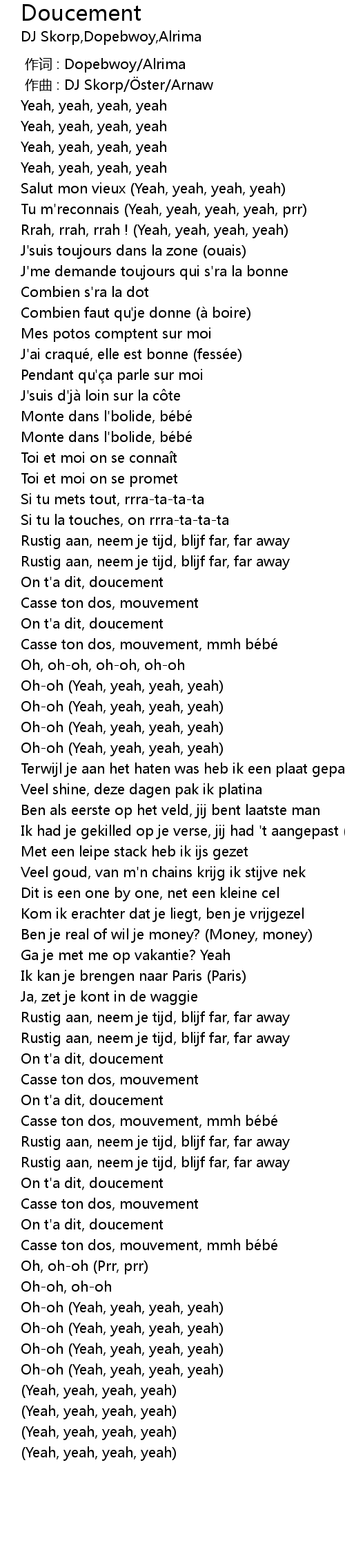 | [00:00.000] | 作词 : Dopebwoy/Alrima |