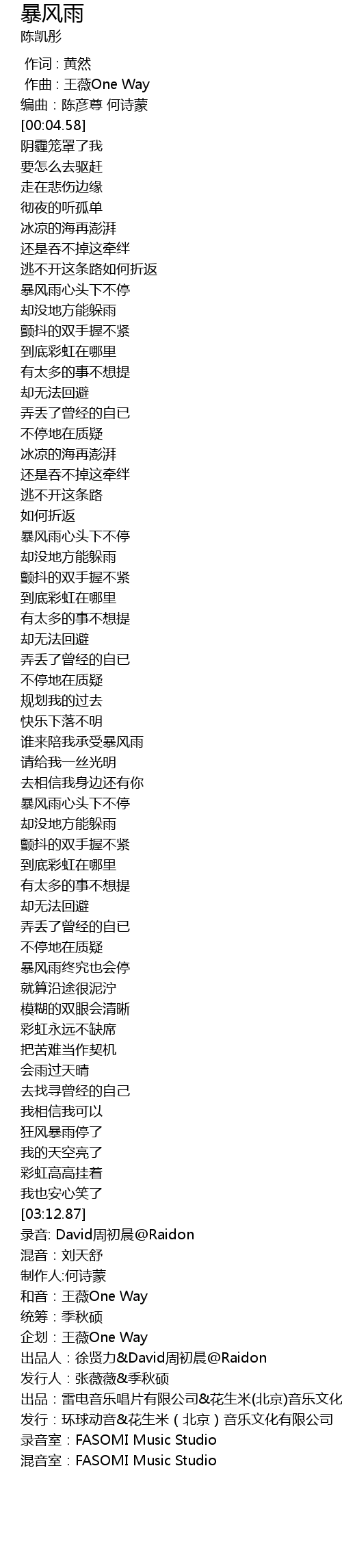 | [03:12.87] | 混音室:FASOMI Music Studio |