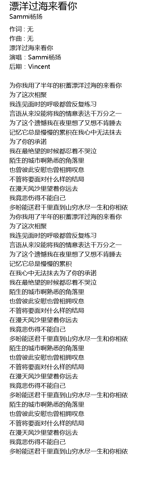 | Song | 漂洋过海来看你 |