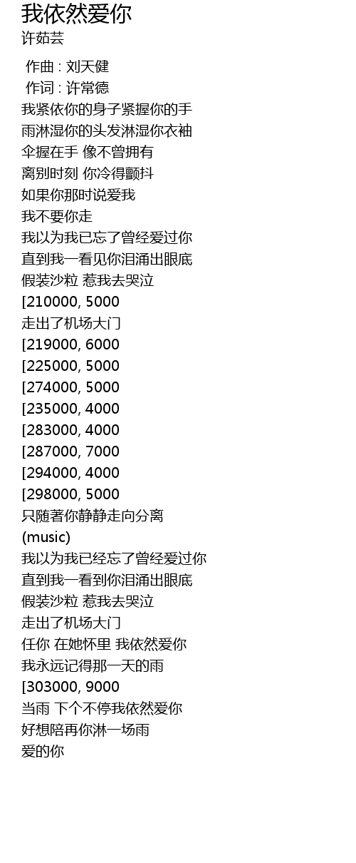 | [01:48.000][225000, 5000] | 事到如今 我依然爱你 |