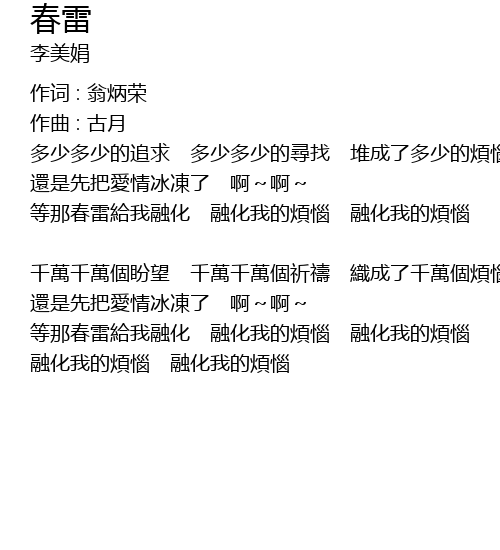 | 等那春雷給我融化 融化我的煩惱 融化我的煩惱 | |