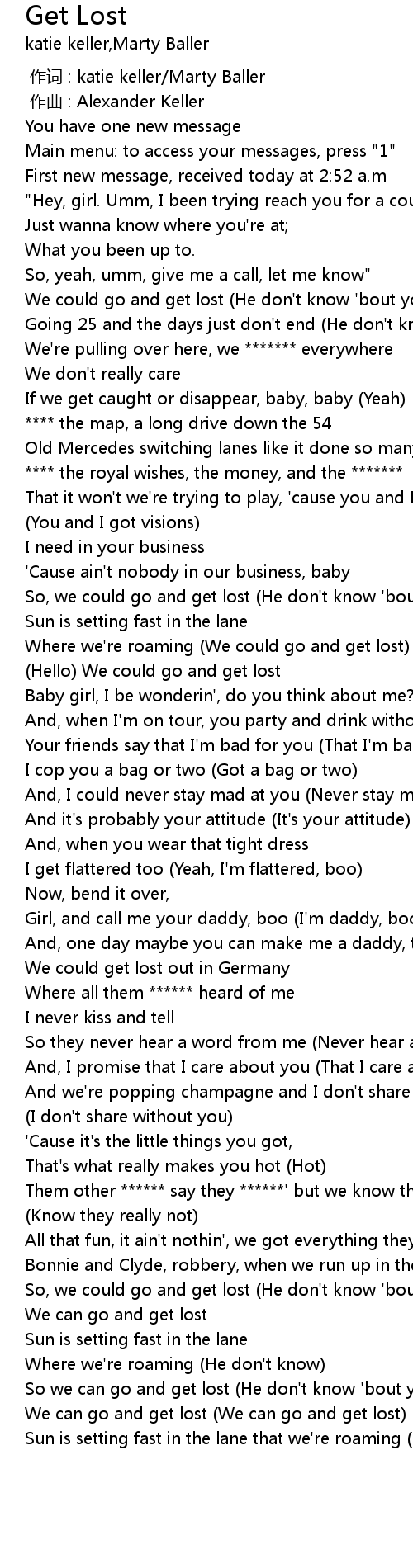| [00:26.33] | We could go and get lost (He don't know 'bout you, baby) |