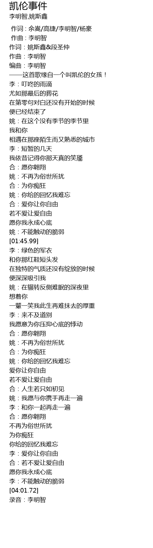 | [00:04.43] | 作词:姚斯鑫&段圣仲 |