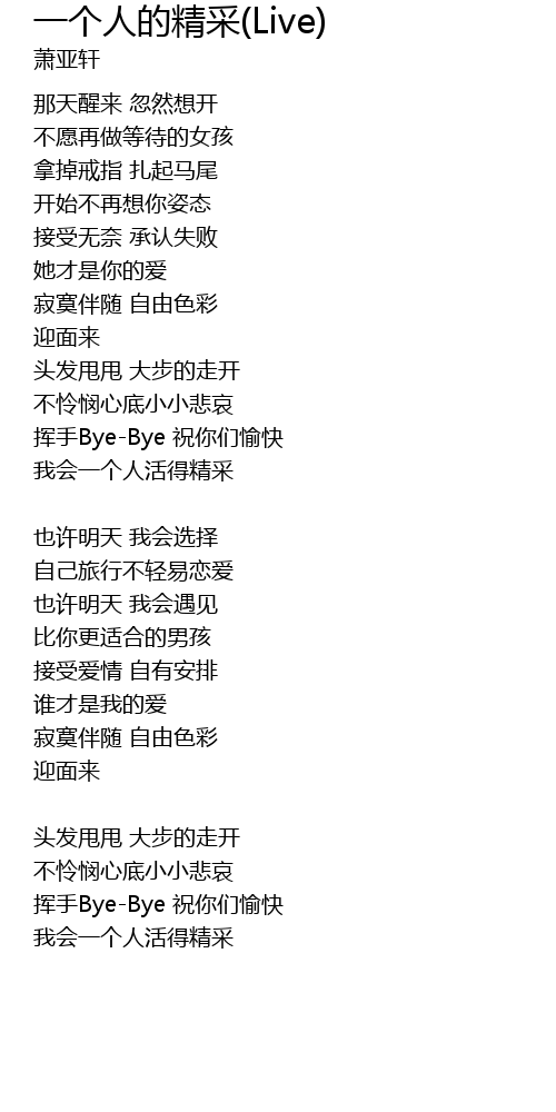 | wǒ huì yí ge rén huó dé jīng cǎi |