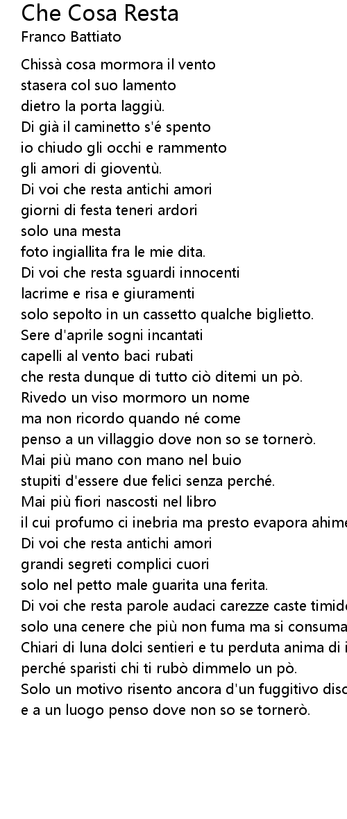 | Di voi che resta parole audaci carezze caste timide braci | |