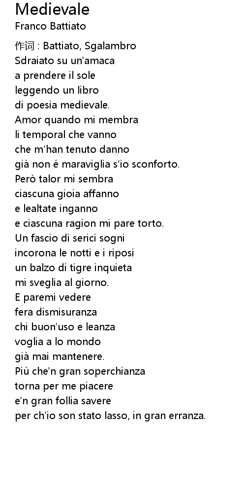 | 作词 : Battiato, Sgalambro | |