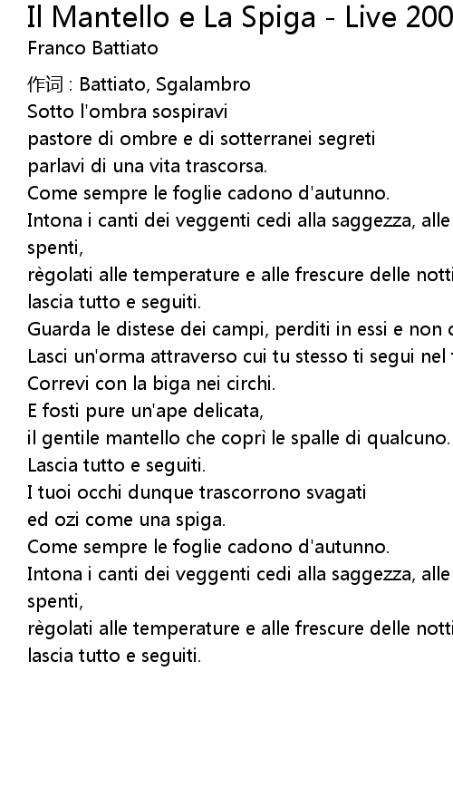 | Song | Il Mantello e La Spiga - Live 2003 |