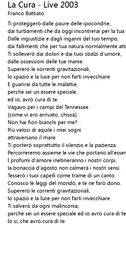 | perche sei un essere speciale ed io avro cura di te ... | |