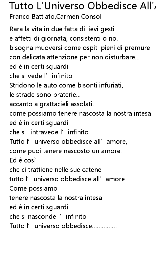 | Song | Tutto L'Universo Obbedisce All'Amore |
