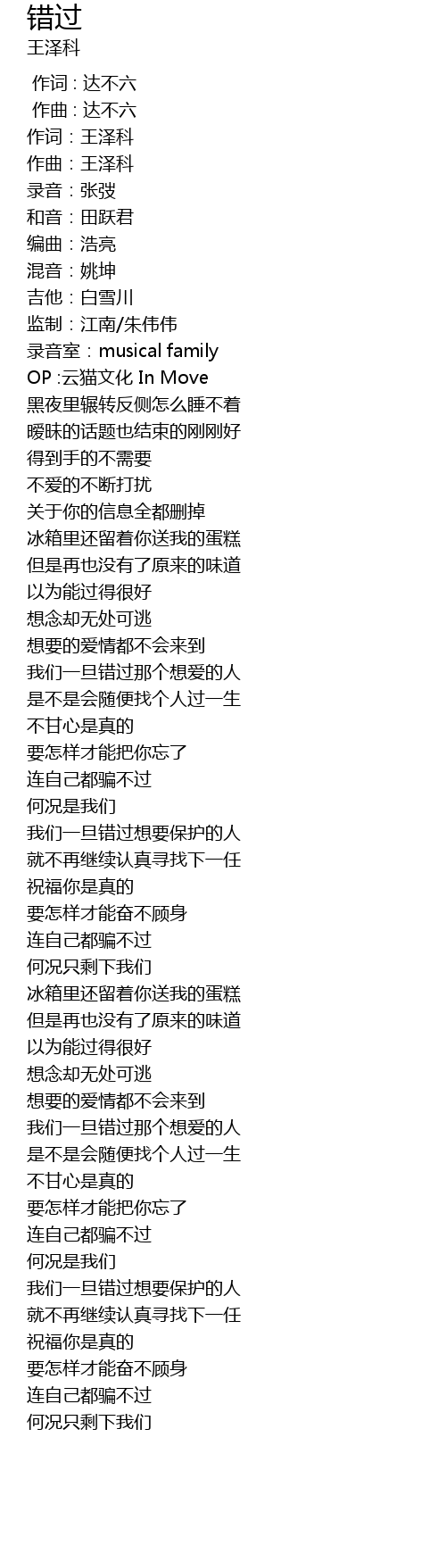 | [00:01.192] | 作曲:王泽科 |