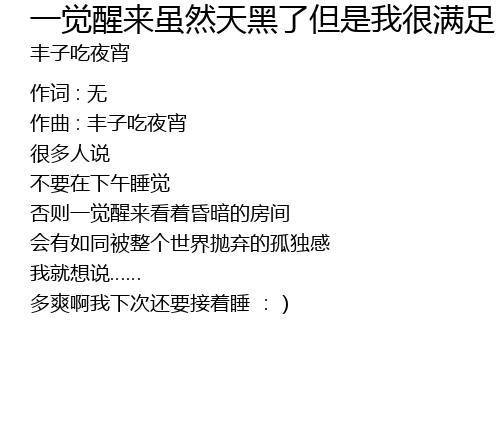 | Song | 一觉醒来虽然天黑了但是我很满足 |