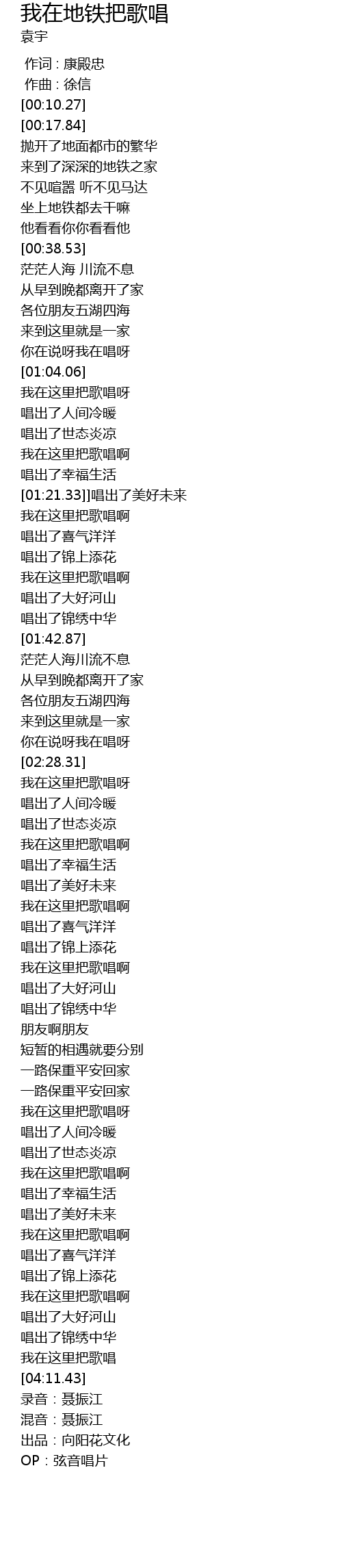 | [01:32.01] | wǒ zài zhè lǐ bǎ gē chàng a |