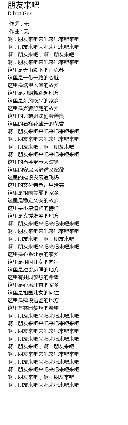 | [01:20.974] | 啊,朋友来吧,啊,朋友来吧 |