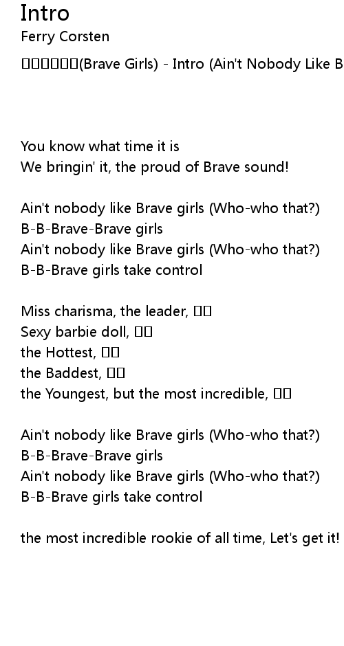 | Brave Girls Intro Ain' t Nobody Like Brave Girls | |