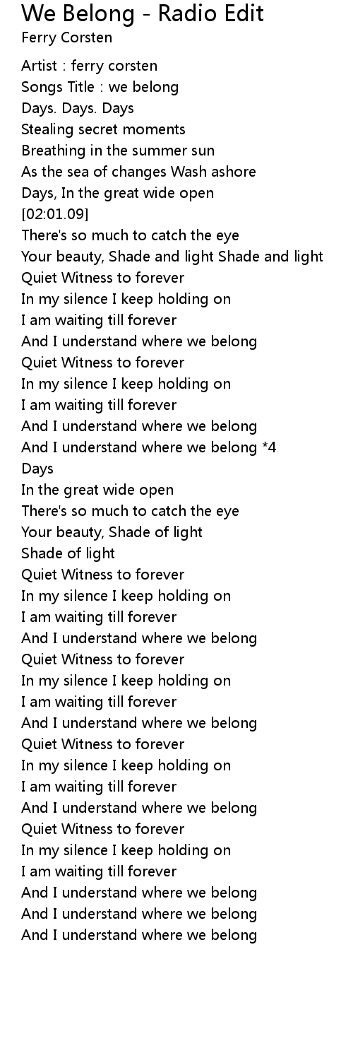 | [02:07.66] | Your beauty, Shade and light Shade and light |