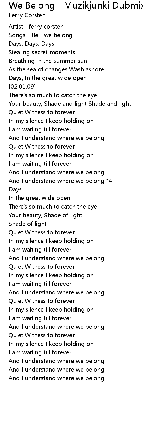 | [00:04.33] | Songs Title: we belong |