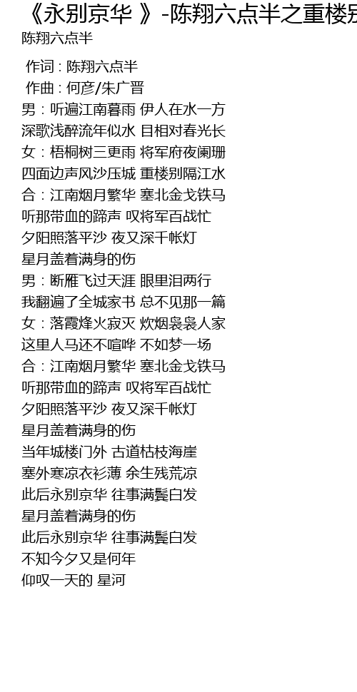 | Song | 《永别京华 》-陈翔六点半之重楼别电影原声 |