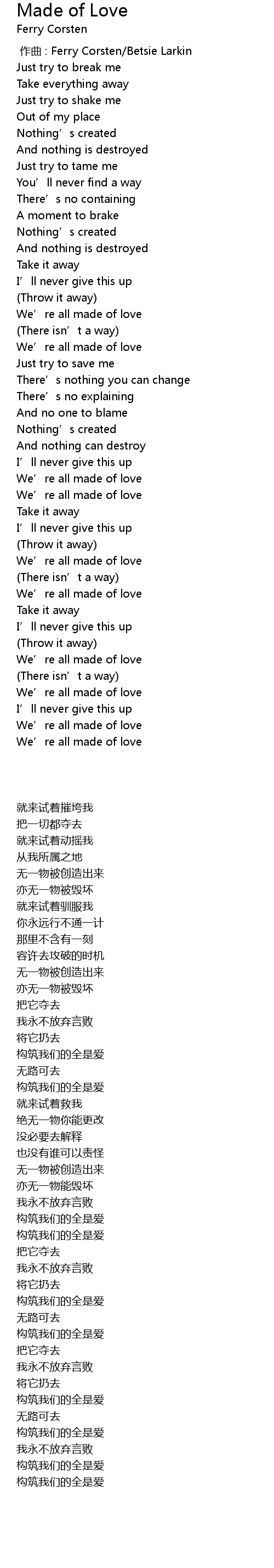 | [03:26.626] | We' re all made of love |