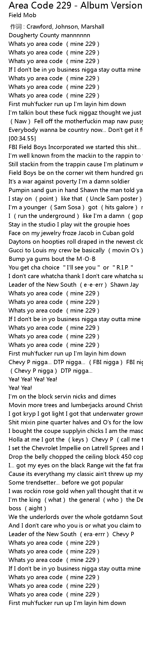 | [03:10.77] | Whats yo area code (mine 229) |