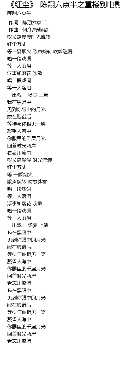 | Song | 《红尘》-陈翔六点半之重楼别电影原声 |