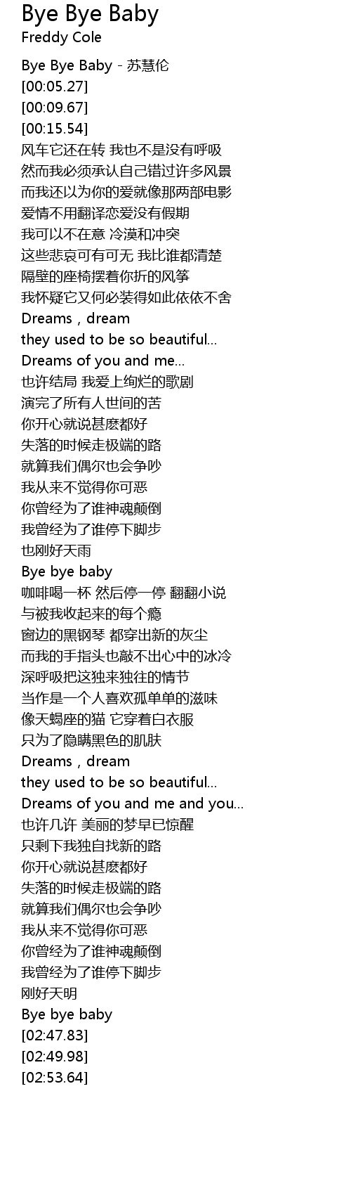 | [00:02.32] | Bye Bye Baby - 苏慧伦 |