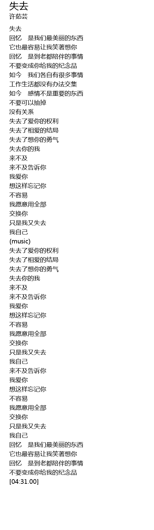 | [01:29.00] | shi qu le xiang ai de jie ju |