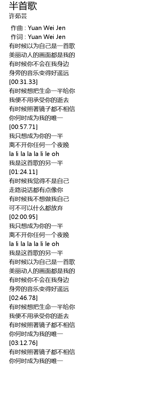 | [00:01.00] | 作词 : Yuan Wei Jen |