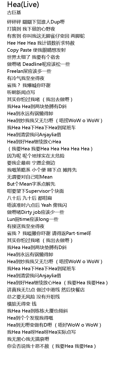 | Hee Hee Hea 我计错数祈求特赦 | |