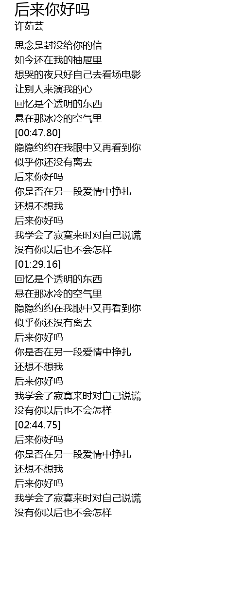 [02:37.69] méi yǒu nǐ yǐ hòu yě bú huì zěn yàng