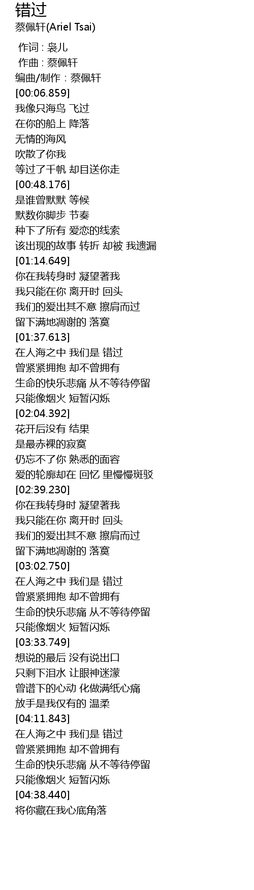 | [03:03.139] | 在人海之中 我们是 错过 |