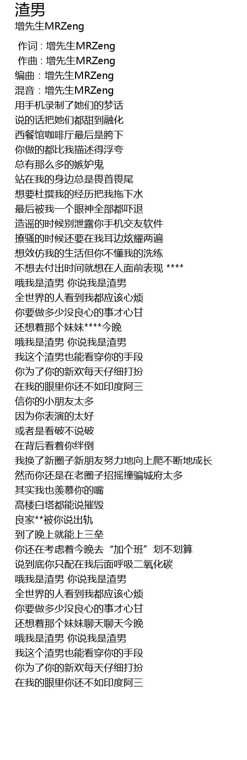| [00:46.164] | 哦我是渣男 你说我是渣男 |