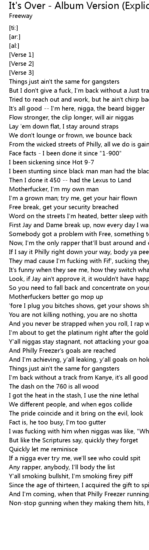 It's Over - Album Version (Explicit) Lyrics