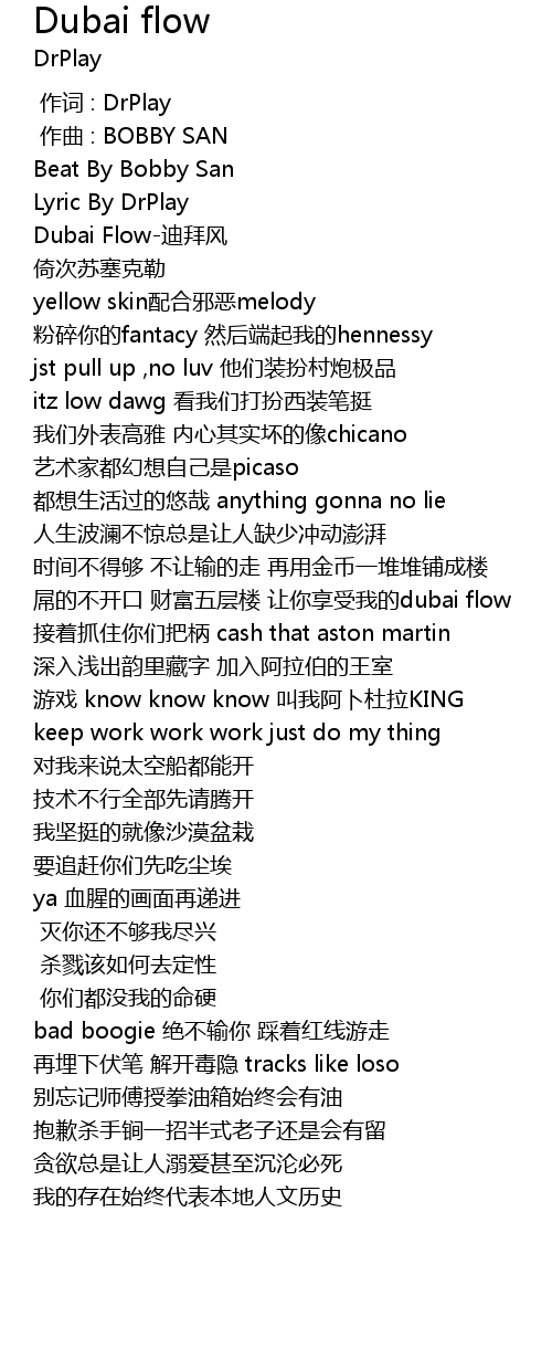 | [00:06.29] | Dubai Flow-迪拜风 |