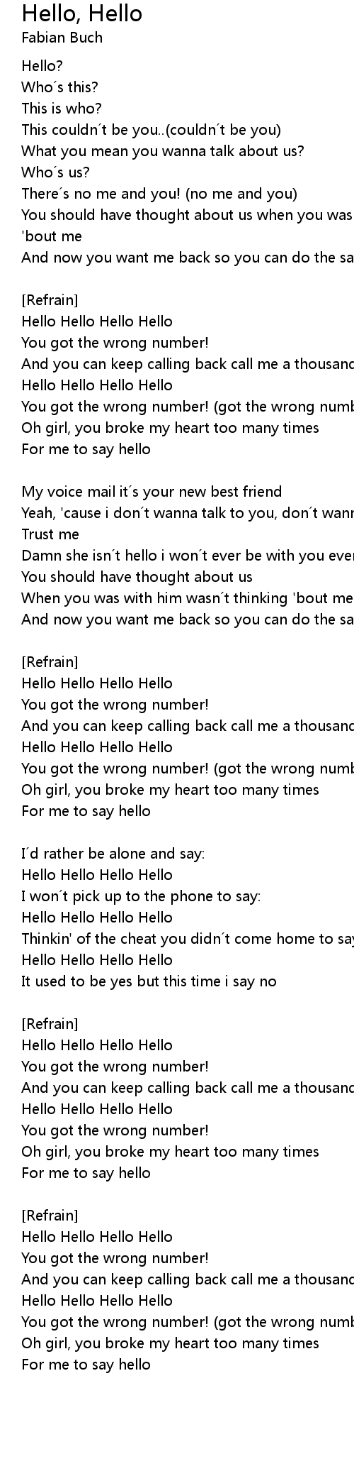 | Damn she isn´t hello i won´t ever be with you ever be with you again | |