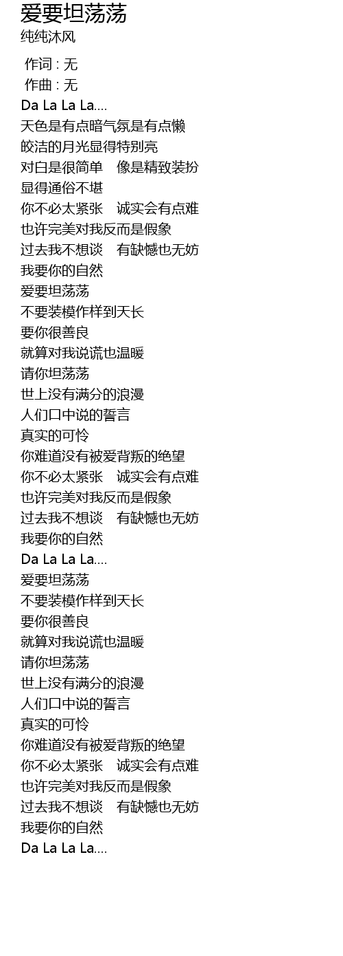 | [00:51.158] | ài yào tǎn dàng dàng |