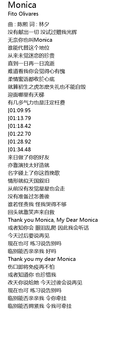 | [02:13.99][01:09.95] | Thank you my dear Monica |