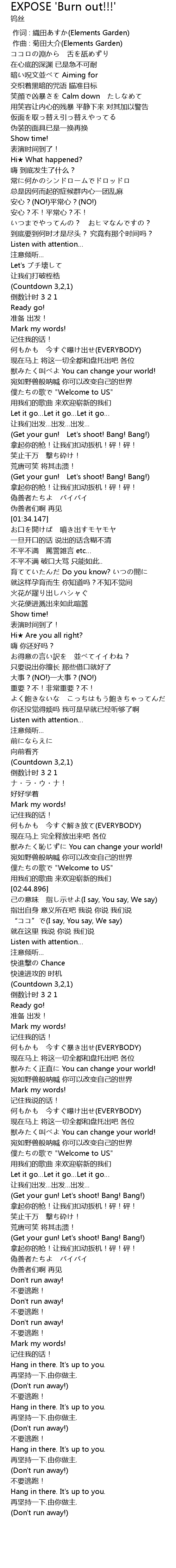 | Song | EXPOSE 'Burn out!!!' |